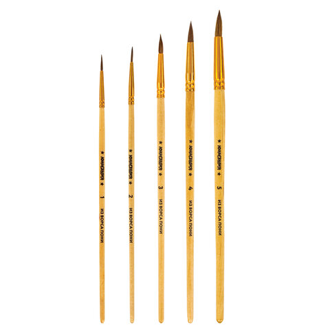 Кисти из волоса пони отлично впитывают и отдают краску, хорошо держат форму, долговечны и надежны. Благодаря кистям №1, 2 и 3 ребенку будет комфортно прорисовывать мелкие детали. Кисти № 4 и 5 позволят делать более крупные мазки и линии. Деревянную рукоятку кисти удобно держать в руке.