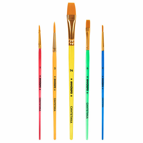 Набор из пяти кистей разного размера ЮНЛАНДИЯ позволяет начинающим художникам решать любые творческие задачи в детском саду, школе и дома.