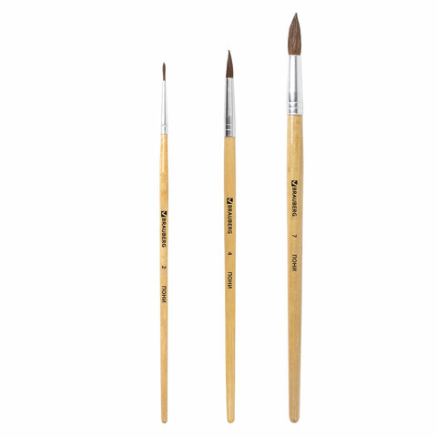 Набор из трех кистей разного размера BRAUBERG позволяет начинающим художникам решать любые творческие задачи в детском саду, школе и дома.