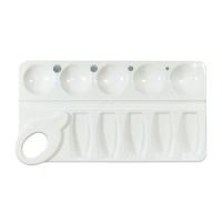 Компактная, легкая палитра для рисования прямоугольной формы. Имеет закруглённые углы для безопасности использования. Позволяет смешивать краски и получать новые тона в процессе рисования.