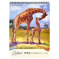 Альбом для смешанных сухих техник А4 30 л., арт. 59482 / 15 ЖИРАФЫ (назначение: карандаши, пастель, перо, уголь; размер: 210х297 мм; мягкий переплёт (гребень), материал обложки: мелованный картон 250 г/м²; вн. блок натуральный белый: 30 л., 160 г/м², 100% целлюлоза, фактура бумаги: среднее зерно / grain fin / CP, матовая текстура бумаги, безкислотность бумаги: Да; особенности: жёсткая подложка из переплётного картона; индивидуальная упаковка: ПЭТ-пакет)