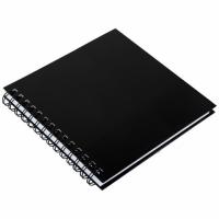 Изделие имеет размер 190х190 мм и содержит 60 белоснежных листов плотностью 160 г/м2 с гладкой текстурой. Листы удобно скреплены спиралью, что позволяет переворачивать их на 180 градусов. Минималистичную черную обложку также можно оформить при помощи наклеек и стикеров (не идут в комплекте). Твердая обложка позволяет делать зарисовки и наброски на весу. Бумага не "съедает" цвет, оставляя яркие цвета неизменными.