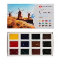 Состав набора: Ганза лимонная, Желтая средняя, Оранжевая Красная светлая, Карминова,я Зеленая темная, Изумрудная, Ультрамарин светлый, Голубая, Фиолетовая темная, Умбра жженая, Охра золотистая, Сиена натуральная, Сиена жженая, Сепия, Сажа газовая,