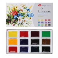 Акварель «Сонет» сочетает в себе основные свойства акварельных красок – прозрачность, интенсивность и чистоту цвета. Все цвета смешиваются между собой, хорошо размываются. Акварелью в кюветах можно заменить закончившиеся краски из набора, что очень удобно. Сбалансированная палитра набора акварельных красок «Ботаника» состоит из 12 цветов. Набор вдохновляет на создание ботанических скетчей благодаря многообразию ярких цветов, присущих природным оттенкам луговых и садовых растений.