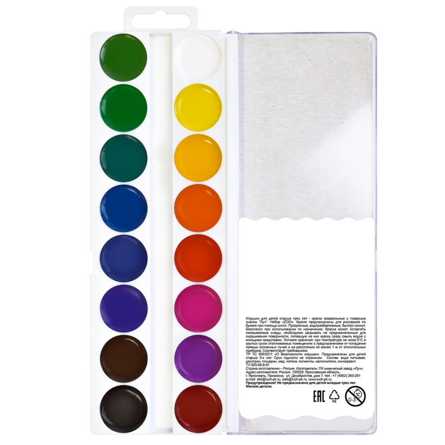 Высококачественные краски для детского творчества с яркими и чистыми цветами, изготовленные по классической рецептуре с использованием мёда. Прекрасно размываются и разносятся по поверхности бумаги. Краски смешиваются между собой, сохраняя насыщенность цвета. Акварель легко смывается с рук и одежды.