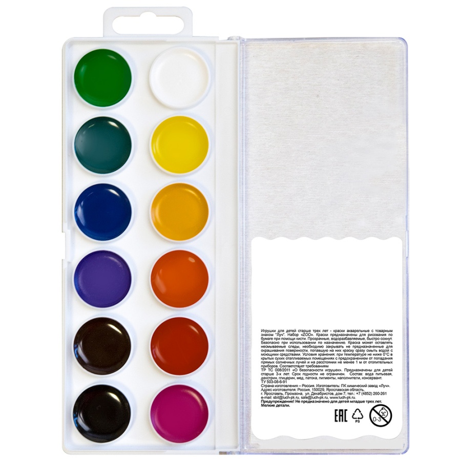 Акварель Луч серии Zoo 12 цветов, без кисточки.