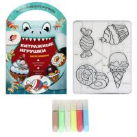 Набор «Вкусняшки» предназначен для рисования витражными красками по трафарету. Пластиковые шаблоны-игрушки идеально подойдут для детей, которые только начинают осваивать эту технику рисования. А забавные образы фигурок придутся по душе не только детям дошкольного и младшего школьного возраста, но и более взрослой аудитории.