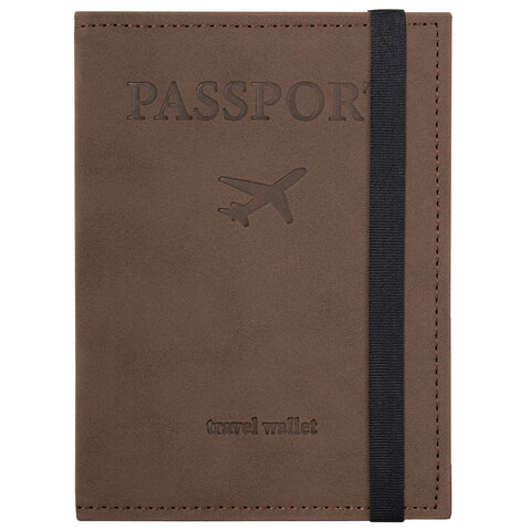 Модель выполнена из экокожи коричневого цвета, что подчеркнет стиль и изысканный вкус обладателя. Украшена тисненой надписью "TRAVEL WALLET", "PASSPORT", края прострочены. На внутреннем развороте с обеих сторон расположены карманы из экокожи разного формата: два отделения для паспорта, СНИЛС, СТС или других документов; четыре отделения для пластиковых карт, водительского удостоверения; два кармашка для сим карт; дополнительный карман, который можно использовать для посадочного билета или купюр. С помощью резинки обложку можно лёгко зафиксировать от раскрытия. Благодаря большому количеству карманов для всех документов и компактному размеру 107х147 мм удобно всегда носить с собой. Упакована в пакет с европодвесом.