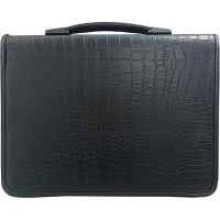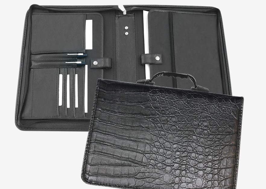 Папка деловая "deVENTE. Manchester" 270x370 мм, искусственная кожа с фактурой под крокодила, ручка-трансформер, 2 откидных клапана на кнопке, большой карман на молнии, 6 отделений для документов, визиток и 2 кармана для ручек, на молнии, черная