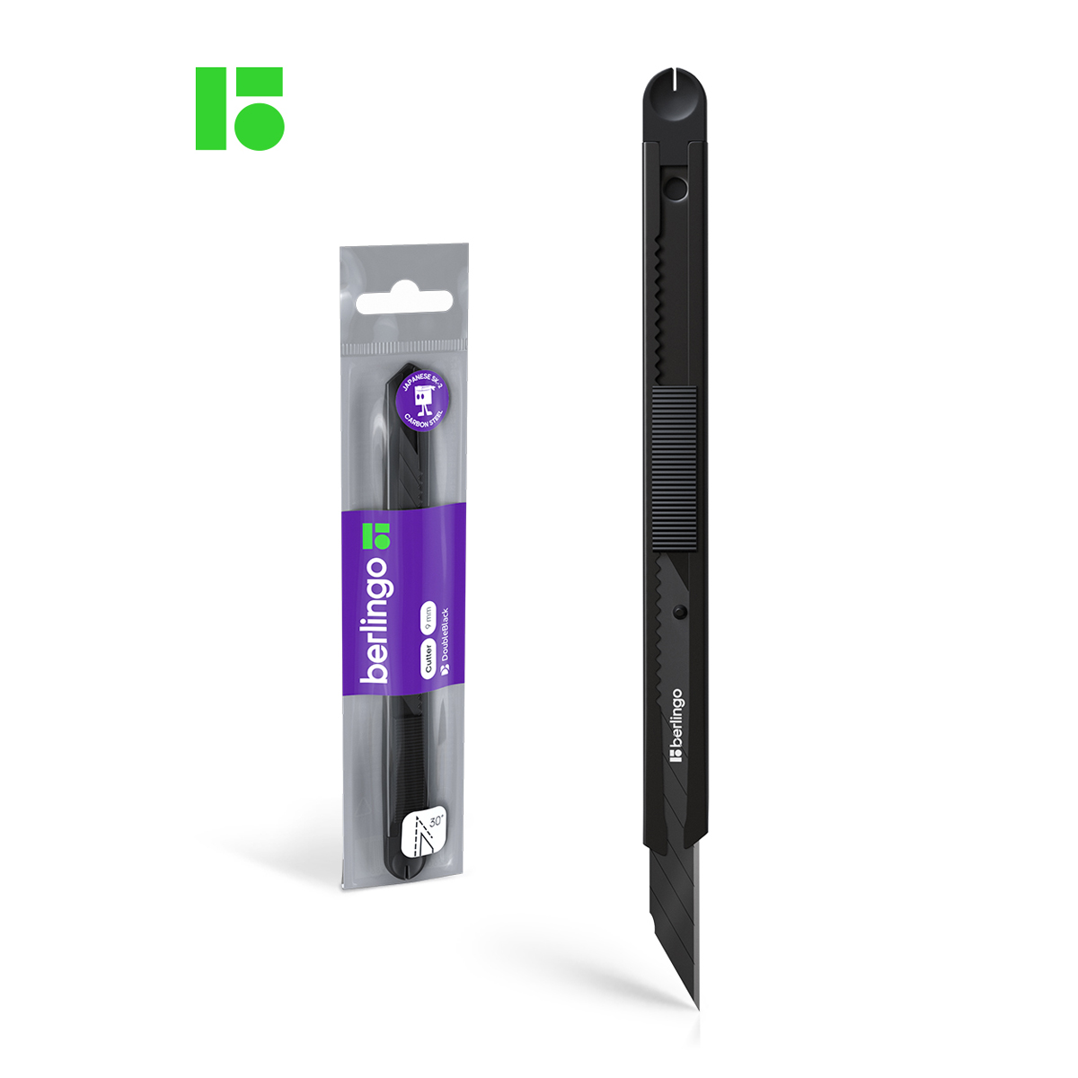 Серия "DoubleBlack". Нож канцелярский с автоматической системой фиксации лезвия auto-lock. Корпус ножа полностью металлический. Цвет корпуса - черный. Комплектуется износостойким лезвием черного цвета из стали SK2 с углом 30°. Ширина лезвия - 9 мм. Индивидуальная упаковка - пакет с европодвесом.
