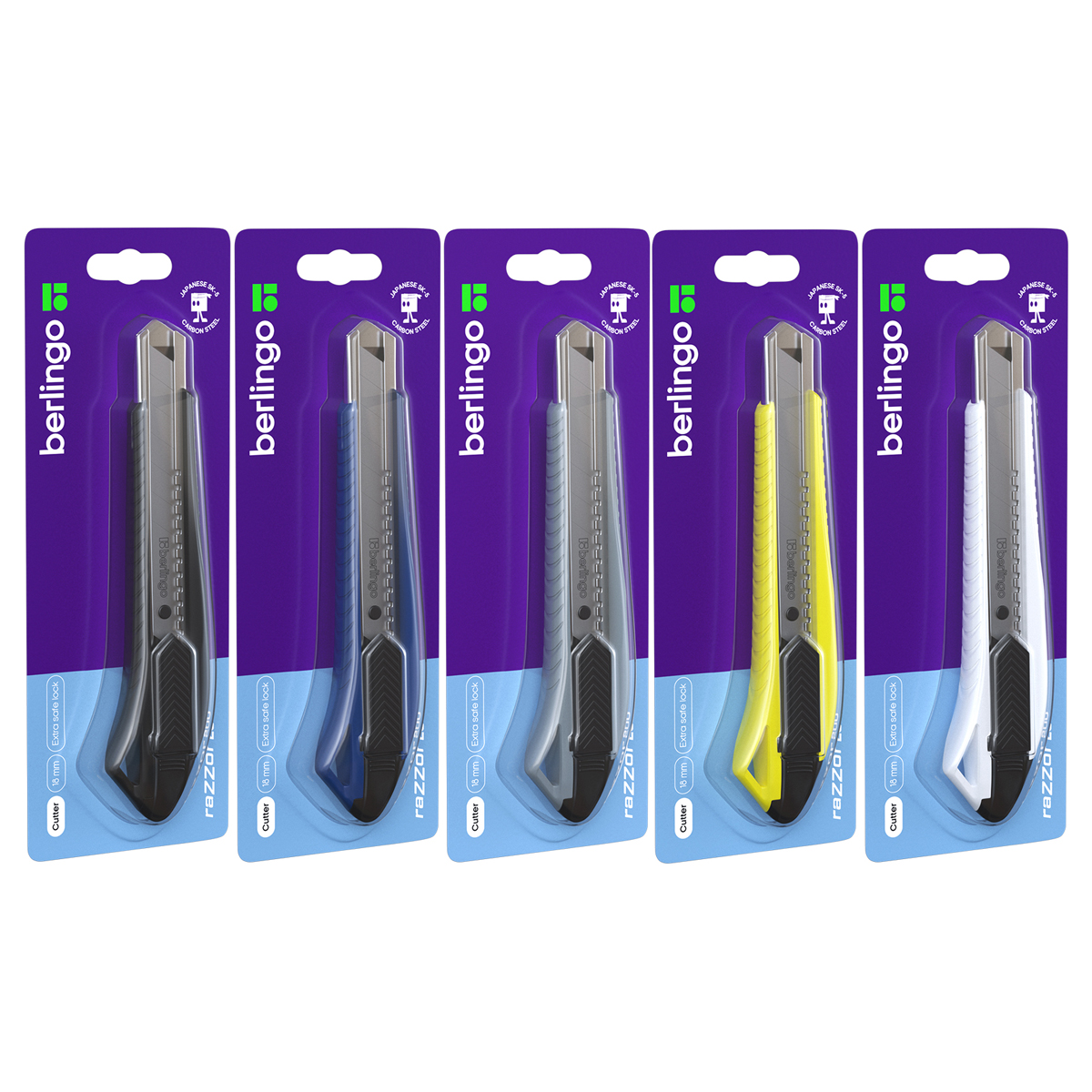 Серия "Razzor 200". Нож канцелярский с системой автоматической фиксации лезвия auto-lock. Корпус ножа выполнен из высококачественного ABS пластика. Имеет металлические направляющие. Комплектуется износостойким лезвием из стали SK5. Ширина лезвия - 18 мм. Индивидуальная упаковка - блистер с европодвесом. На оборотной стороне блистера есть перфорация для более удобного извлечения инструмента из упаковки.