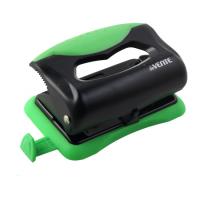Дырокол "deVENTE. Monochrome" (10 листов) пластиковый с каучуковой вставкой, с линейкой, в картонной коробке, черный с неоновым зеленым