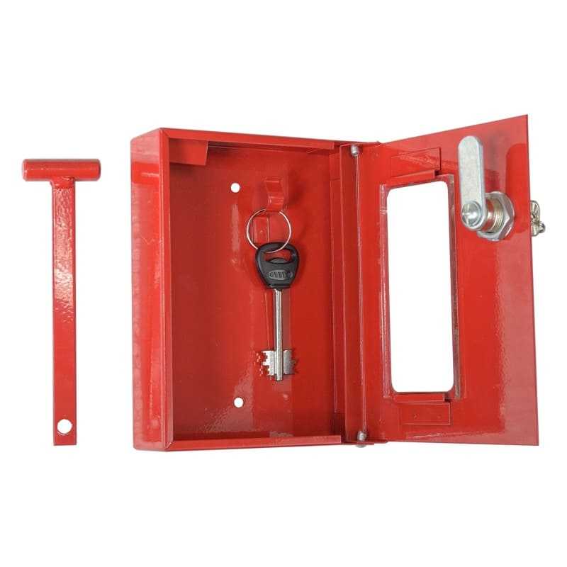 Пожарная ключница с молоточком предназначена для размещения одного ключа, часто в ней прячут ключ от аварийного, противопожарного выхода.