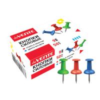 Кнопки канцелярские силовые "deVENTE" диаметр 9 мм, цветные в форме гвоздика, 50 шт в картонной коробке