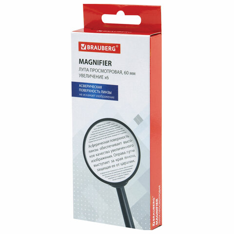 Просмотровая лупа BRAUBERG облегчает чтение, просмотр карт, мелких рисунков, шкал, схем.