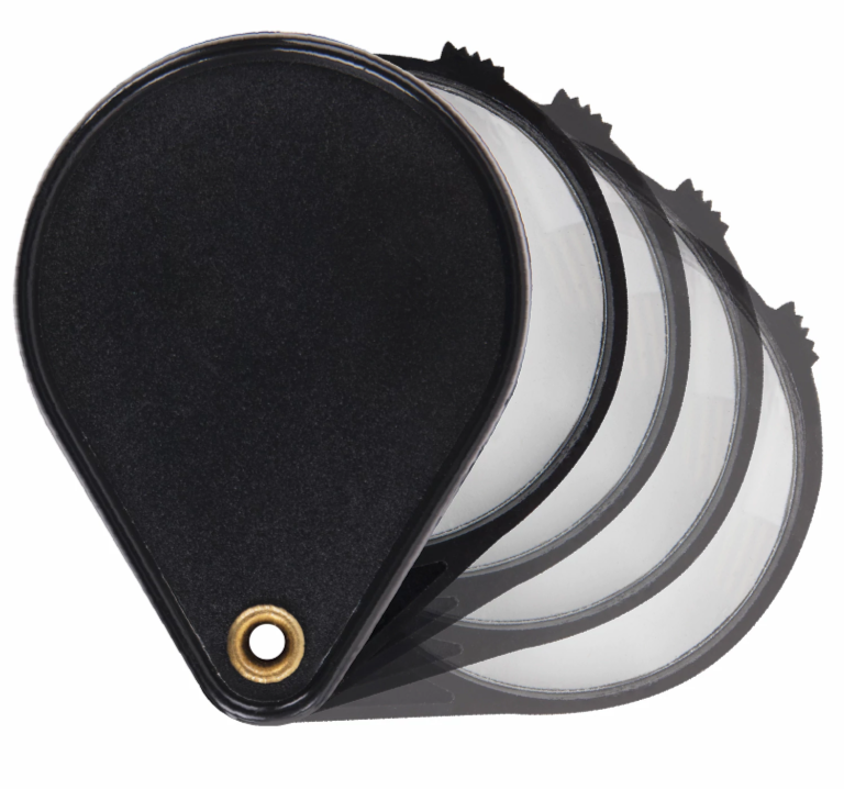 Корпус выполнен из пластика, а линза - из стекла. Асферическая поверхность линзы обеспечивает высокое качество изображения при увеличении мелких объектов и изображений. Диаметр линзы - 50 мм, производит шестикратное увеличение. Оправа лупы выступает за края линзы, защищая её от царапин. Снабжена удобной складной пластиковой ручкой.