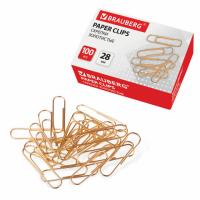 Скрепки изготовлены из стали, имеют классическую овальную форму и золотистый цвет. Длина скрепки составляет 28 мм. Не окисляются и не повреждают документы. 100 штук в картонной коробке.