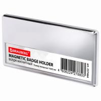 Горизонтальный бейдж-табличка BRAUBERG MAGNETIC для именных карточек. Безопасное и надежное крепление на двух магнитах. Для именной карточки предусмотрено специальное окошко, открываемое с помощью технического отверстия на задней стороне бейджа.