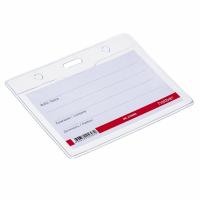 Бейджи представляют собой таблички маленького размера с окошком, в которое вставляется вкладыш с нужной информацией - фамилия, имя, отчество и должность. Бейдж изготовлен из плотного прозрачного пластика, представлен в горизонтальном варианте. Размер бейджа: 99х76 мм (внутренний 95х56 мм).