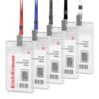 Бейдж вертикальный в комплекте с лентой. Материал бейджа - ПВХ, цвет - прозрачный. Имеет размер вставки 62х91 мм. Лента изготовлена из полиэстера, имеет металлический зажим. Ширина ленты составляет 12мм. Бейдж подходит для ношения именных карточек и пропусков.