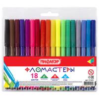 Обладают яркими цветами в количестве 18 штук. Удобная круглая форма корпуса, длина которого 126 мм, а диаметр - 7 мм. Благодаря толщине линии письма 1 мм и диаметру пишущего узла 1,8 мм процесс раскрашивания становится легким. Длина письма составляет 400 м: такого расхода хватит надолго. Фломастеры изготовлены на водной основе, поэтому они безопасны и легко смываются с большинства материалов и кожи. Полипропиленовый корпус значительно продлевает срок службы фломастеров. Колпачок имеет специальные прорези для вентиляции, которые способствуют прохождению воздуха при попадании в дыхательные пути малыша. Рекомендованы для детей от 3-х лет.