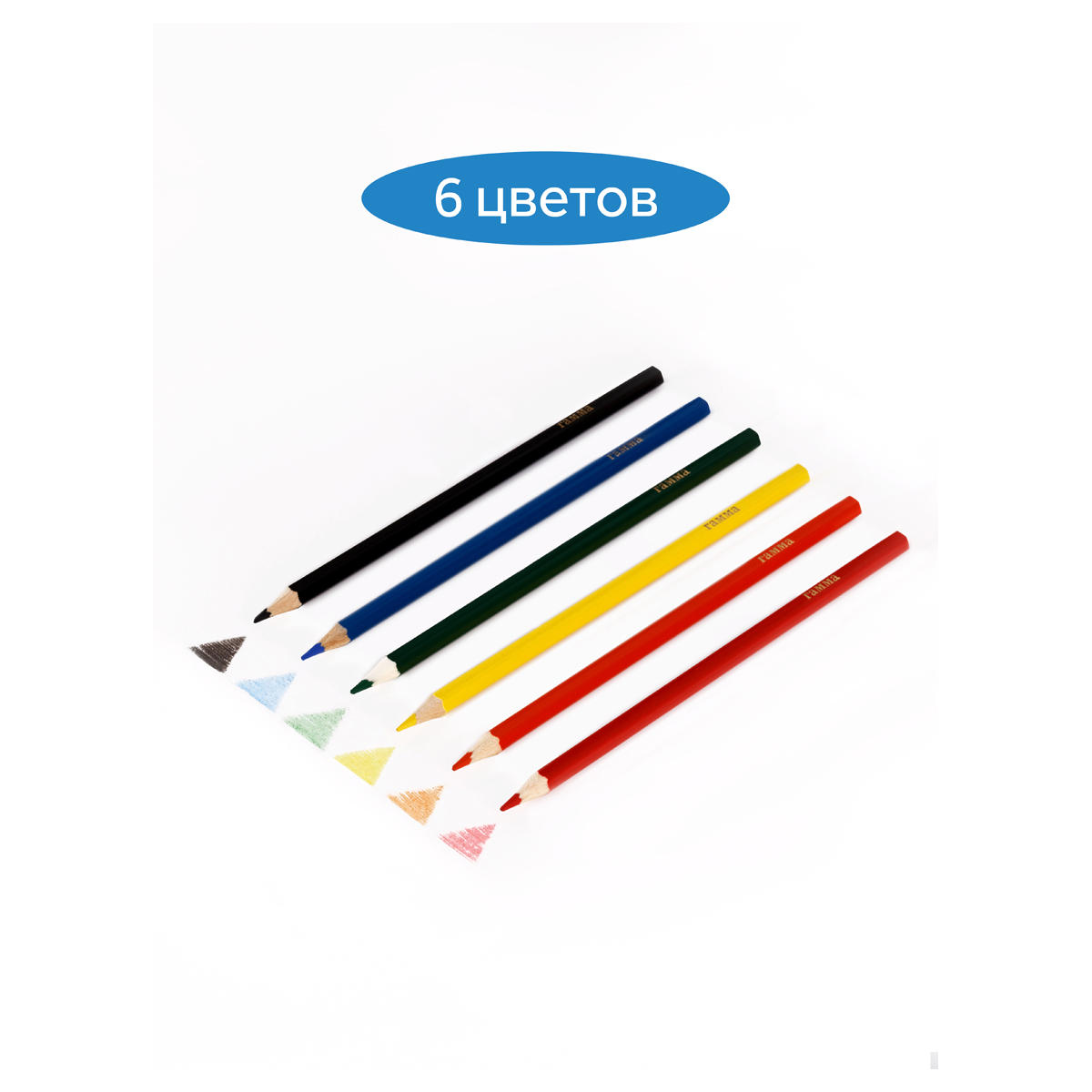 Цветные карандаши ГАММА серии «Классическая» созданы специально для детей, которые уже чувствуют себя настоящими художниками. В наборе 6 цветов: желтый, оранжевый, красный, синий, зеленый, черный. Диаметр грифеля — 2,9 мм. Проклеенный ударопрочный грифель не крошится во время заточки и не ломается даже после падения. Корпус карандаша диаметром 7 мм и длиной 174 мм изготовлен из мягкой натуральной древесины и его легко точить. За яркость и высокую укрывистость отвечают качественные пигменты в составе. Ребенку не придется сильно давить на карандаш — рисунок получится ярким и равномерно закрашенным. Представлены в удобной упаковке-конверте в креативном дизайне.