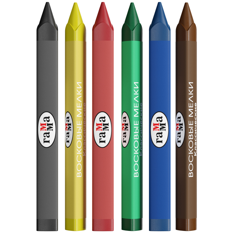 Набор из 6 восковых мелков ГАММА серии «Классическая» отлично подойдёт для рисования на бумаге, картоне и любой шероховатой поверхности. Мелки имеют эргономичную трёхгранную форму, длина мелка составляет 90 мм, а диаметр корпуса — 8 мм. В наборе 6 ярких цветов: жёлтый, зелёный, синий, красный, чёрный, коричневый. Они идеальны для первых начинаний ребенка в рисовании и раскрашивании, так как они удобно лежат в руке. Мелки производятся на основе натуральных растительных компонентов: воска и естественных пищевых красителей. Мелки не пачкают руки, не липнут, не имеют выраженного химического запаха. Каждый мелок обёрнут в бумажную гильзу и уже заточен.