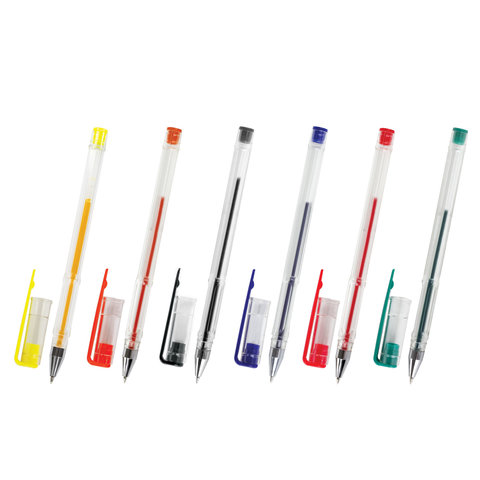 Ручка имеет шестигранный прозрачный корпус и удобная рифленная зона захвата. Сменный стержень длиной 130 мм со стандартным наконечником позволит использовать ручку максимально долго. Диаметр пишущего узла, равный 0,5 мм, создает линию письма, равную 0,35 мм. Набор включает гелевые ручки из 6 необычных цветов: зеленый, черный, синий, желтый, оранжевый, красный.
