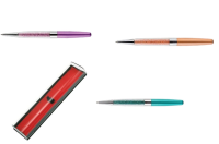 Стильная и элегантная ручка Centrum «LOTUS» станет идеальным дополнением делового имиджа преуспевающей женщины или самым узнаваемым аксессуаром в офисе и учебных заведениях. Отличительной чертой модели является прозрачная полость, которая заполнена россыпью мелких кристаллов, изящно мерцающих и переливающихся при свете. Ручка представлена в металлическом корпусе с пластиковой нижней частью. Подача стержня осуществляется за счет поворотного механизма. Цвет корпуса в ассортименте. Диаметр шарика 1,0 мм.