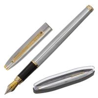 Стильная модель перьевой ручки с корпусом из металла серебристого цвета и золотистыми деталями. Синий цвет чернил, иридиевое перо украшено гравировкой. Диаметр пишущего узла – 0,7 мм. Тип пера – M (Medium) – средняя ширина линии. Размер картриджа – 37 мм.
