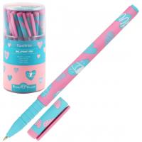 Эта ручка из коллекции "Fun Write" оформлена ярким орнаментом из пряничных сердечек на голубом фоне. Ручка качественная и удобная, ею можно писать долго и с удовольствием. Корпус выполнен из пластика и покрыт мягким и приятным нескользящим напылением "Silk Touch", дополнен грипом. Есть закрывающий колпачок с клипом. Стержень сменный, заполнен высококачественными пигментными чернилами "Dokumental". Линии при письме не размываются, четкие, тонкие - толщина 0,38 мм.