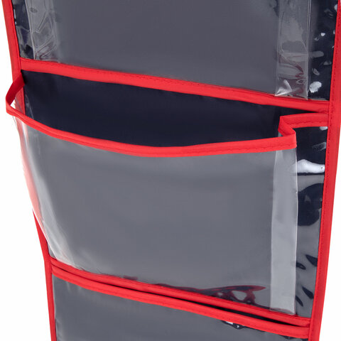 Органайзер состоит из 5 карманов: 2 маленьких для мелочей, 2 средних и 1 увеличенного размера за счет складки для дополнительного объема. Размер органайзера с кармашками – 24х88 см.