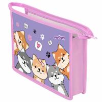 Изготовлена из прочного износостойкого пластика с тканевой окантовкой по краям. С одной стороны яркая печать коллекционного дизайна. Размер папки - 330х230 мм, ширина - 55 мм. Данный формат товара позволяет разместить канцелярские принадлежности и принадлежности для творчества внутри, а также бумаги, документы и учебные пособия формата А4. Папка имеет удобную застежку-молнию сверху.