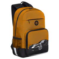 Школьный рюкзак GRIZZLY, одно отделение, карман на молнии на передней стенке, объемный карман на молнии на передней стенке, боковые карманы из сетки, откидное жесткое дно, внутренний карман для электронных устройств, внутренний держатель для ключей - фастекс, жесткая анатомическая спинка, нагрудная стяжка-фиксатор, фастекс со свистком на нагрудной стяжке, укрепленные лямки, ручка из стропы, помещается А4, светоотражающие элементы с четырех сторон, фрагмент наката выполнен светоотражающими красками, держатель для школьной карты.