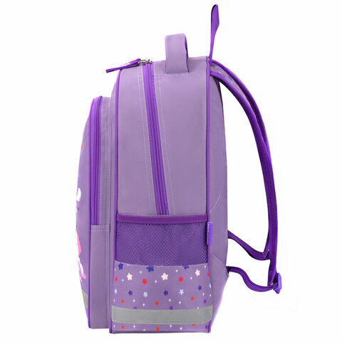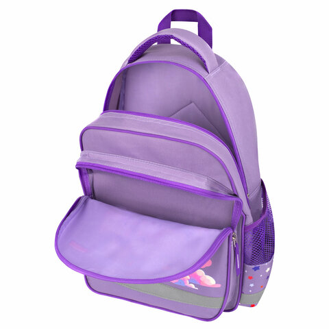 Рюкзак имеет 1 вместительное отделение на молнии, 1 передний карман и 2 боковых. Оптимальный размер рюкзака позволяет вместить все необходимые школьные принадлежности. Мягкие широкие регулируемые лямки способствуют оптимальному распределению веса.