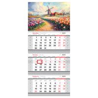 Календарь квартальный BG «Мельница» на 2026 год – незаменимая вещь в жизни делового человека и отличный помощник для офиса. Размер вертикального календаря – 295×660 мм. 3 календарных блока по 12 листов на 3 гребнях изготовлены из офсетной белой бумаги плотностью 65 г/м2 с печатью в 2 краски. Подложка изготовлена из чистоцеллюлозного мелованного картона 200 г/м2. Нижняя имеет цветность в 1 краску, верхняя – полноцветная. Есть удобный бегунок-курсор и пикколо для подвески.