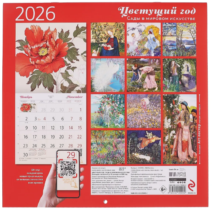 Практичный и прекрасно иллюстрированный календарь призван украсить интерьер вашего дома и наполнить его светом знаменитых шедевров мирового искусства. Сетка календаря составлена с учетом потребностей делового человека: в ней отмечены государственные праздники и оставлено место для заметок на каждый день. А безупречные с точки зрения качества рисунки будут радовать вас весь год!
