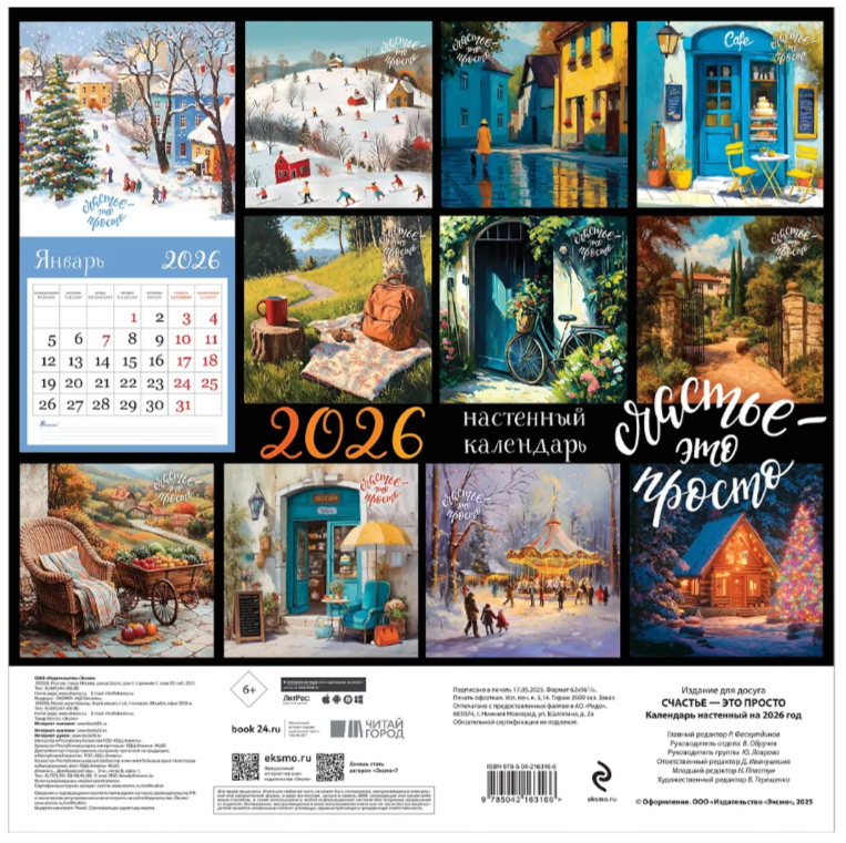 Что такое счастье? Каждый решает для себя сам. Для кого то это уютный дом, для кого то быть любимым и любить, для кого то путешествие. В нашем календаре каждый найдет для себя ответ на этот самый важный вопрос. Красочные иллюстрации календаря наполнят ваш дом настроением и добротой.