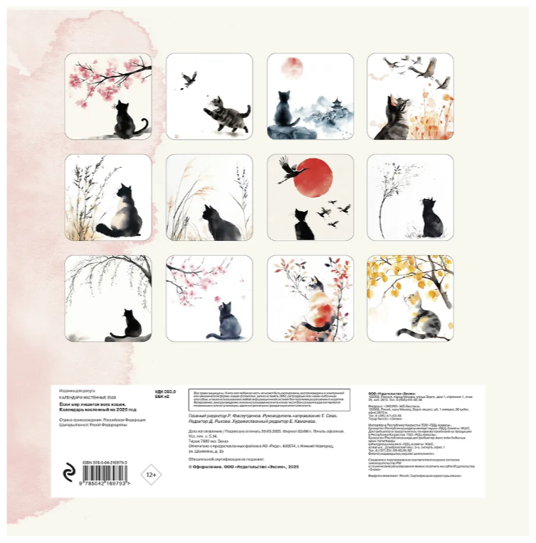 Календарь по мотивам нашумевшего бестселлера с цитатами из книги, которые заставят задуматься о самом главном в жизни. А акварельные иллюстрации котиков в азиатском стиле умилят любого! Внутри - удобная календарная сетка, на которой отмечены выходные и праздничные дни.