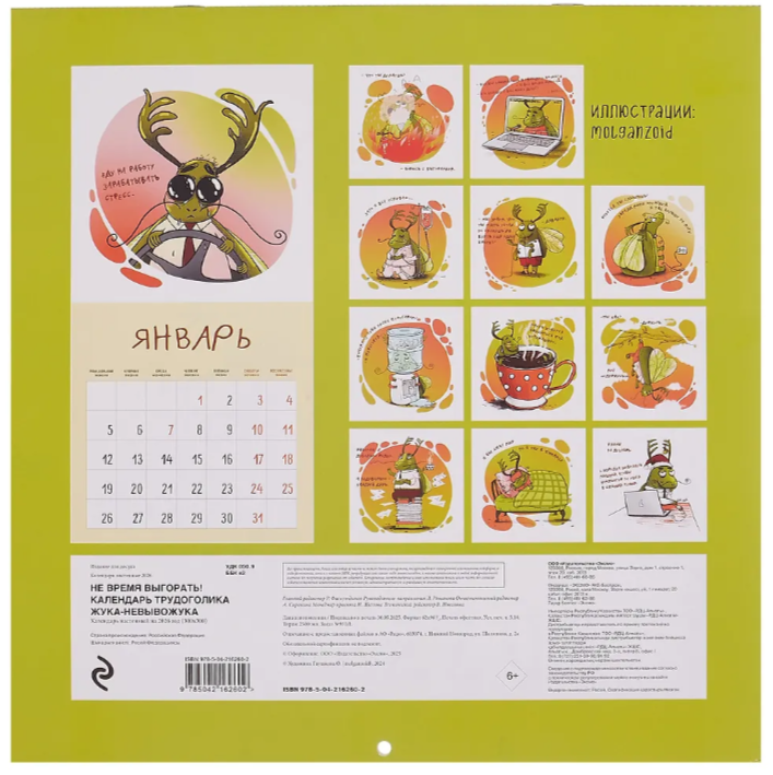 Не время выгорать! Календарь трудоголика жука-невывожука. Календарь настенный на 2026 год (300х300)