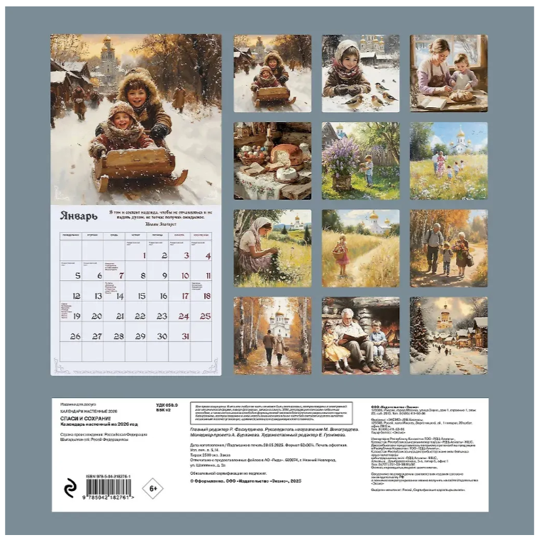 Наши настенные календари отличаются высоким качеством исполнения! Тщательно подобранные иллюстрации, напечатанные на глянцевой бумаге высочайшего качества, станут настоящим украшением дома, а в календарной сетке найдется место для ваших планов: большие клетки позволят делать записи и организовать свой год! В календаре также отмечены все государственные праздники.