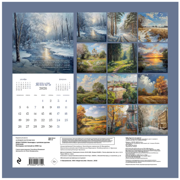 Календарь с цитатами русских классиков о русской природе, подобранными под каждый месяц. Красивые пейзажи русской природы в стиле полотен 19 века.