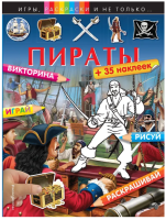 В книге "Пираты" на каждой странице юного поклонника отважных покорителей морей ожидает что-то новое: викторина, раскраски по образцу, сложные раскраски по цветовому коду, тесты с наклейками, рисование по клеточкам, раскраски по точкам и головоломки!
