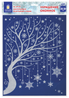 Изделие с зимним тематическим изображением представляет собой наклейку, изготовленную из поливинилхлорида (ПВХ). Наклейка размером 30x38 см декорирована белым глиттером. Украшение предназначено для декорирования окон, зеркал, стекол и других ламинированных глянцевых поверхностей. Не оставляет клеевых следов и предназначено для многократного использования. Крепится к поверхности посредством статического эффекта. Украшение на белой картонной подложке упаковано в прозрачный полипропиленовый пакет на картонном подвесе.