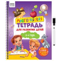 Многоразовая рабочая тетрадь «ТРИ СОВЫ» поможет организовать обучающие занятия с ребенком в возрасте 3-4 лет. Состоит из 30 ламинированных страниц с яркими иллюстрациями и увлекательными заданиями. Формат А4 удобен для использования и хранения. В комплект входит маркер с губкой для стирания, позволяющий многократно повторять упражнения для закрепления знаний.
