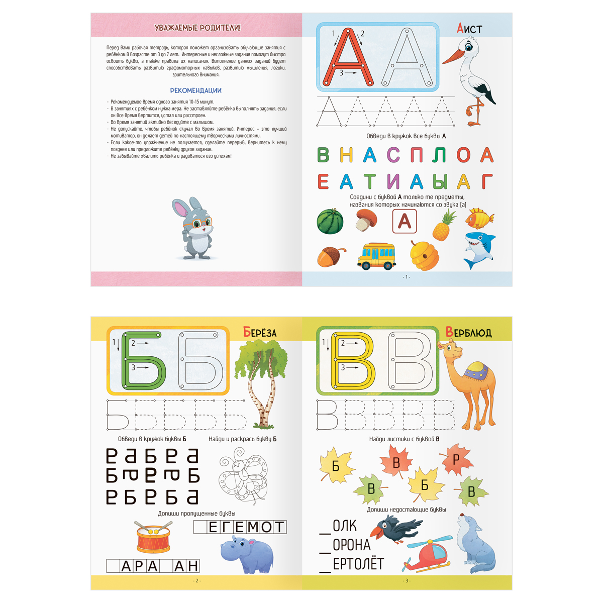 Перед Вами рабочая тетрадь «ТРИ СОВЫ», которая поможет организовать обучающие занятия с ребенком в возрасте от 3 до 7 лет. Внутри 30 ламинированных страниц с яркими иллюстрациями и заданиями для малышей. Формат: А4. Интересные и несложные задания помогут быстро освоить буквы, а также правила их написания. Выполнение данных заданий будет способствовать развитию графомоторных навыков, развитию мышления, логики, зрительного внимания. Для удобства родителей к тетради прилагается маркер с губкой для стирания, т.к. для усвоения знаний упражнения можно выполнять неоднократно.