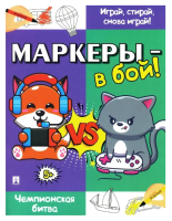 Как занять ребёнка в очереди в поликлинике или долгой поездке? Многоразовая игра на ламинированных страницах «Маркеры — в бой!» — это отличное решение. Весёлые задания расположены так, чтобы было удобно играть вдвоём. Рисуйте водными маркерами, которые легко стереть, и играйте снова и снова!