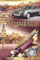 Поздравительная открытка "Поздравляем!" в сдержанных тонах для настоящих мужчин. Простая композиция и брутальное стихотворение – самое подходящее поздравление!