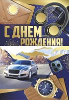 Большая поздравительная открытка "С Днем рождения!" с брутальным дизайном для настоящих мужчин. Простая композиция и нужные слова – самое подходящее поздравление!